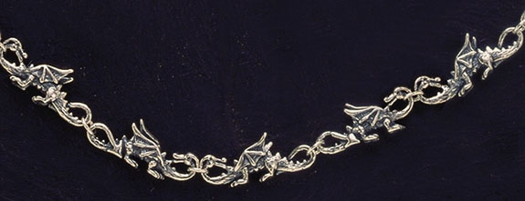 | Flying Dragon Link Bracelet - a fun 7" bracelet with 10 small little dragon links, pairs facing each other. These are great and we brought in the matching earrings and charms for these guys. Solid .925 silver. |