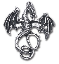 | E175 - Wyverex Dragon Earring - A wonderful single earring of a dragon, wings spread, roaring defiance. Rare Medieval beast of proven origins and powerful influence. Surgical steel wire, pewter dragon. Single earring. |