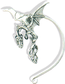 | ew20 - Winged Dragon Ear Wrap - I was enchanted by this dragon when first I saw him and set off to find a way to provide my customers with ones just like him. Typically draconic, he perches over the ear in a protective yet menacing posture sure to draw attention from everyone! Solid sterling silver. |