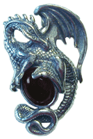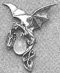 | Dragon Clutching Moonstone Pendant - This wonderful dragon clutching a moonstone is a wonderful match for our very popular ear wrap. This dragon has a hidden loop so he seems magically suspended from around your neck. |
