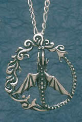 | Fire Dragon Pendant - This beautiful pendant has an inner file that circles around your neck as it wings its way freely on any chain you choose to place it on. While not supplied with a chain, this pendant can be a pendant or an earring as it is 1" x 7/8" |