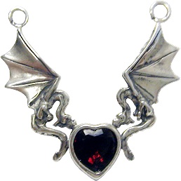 | Baby Dragons With Heart Neckpiece - available with faceted garnet, two baby dragons face each other, kissing the heart on each side with a chain attached to each wing (not pictured). Stone size: 8mm heart |