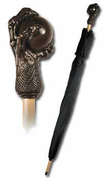 | Dragon Claw Umbrella - The ultimate gentleman's cane displaying a heady embodiment of elegance, mysticism and ferocity. Feel the smooth resin ball rotate in your hand, within the grasp of the hand-polished resin claw. An excellent umbrella and very classy and goes well with anyone - female or male. The black and brown tones of the colour scheme make it perfect for the gentleman while the classic lines and high quality compliment the ladies ensemble. Great for anyone. |