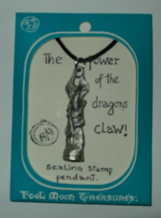 | Dragon Sealing Pendant - comes on a 24" silken cord. Pendant is approximately 2" tall and comes mounted on a card - perfect for gift giving. The seal will work with wax or ink pads and makes a great pendant or personal seal. |
